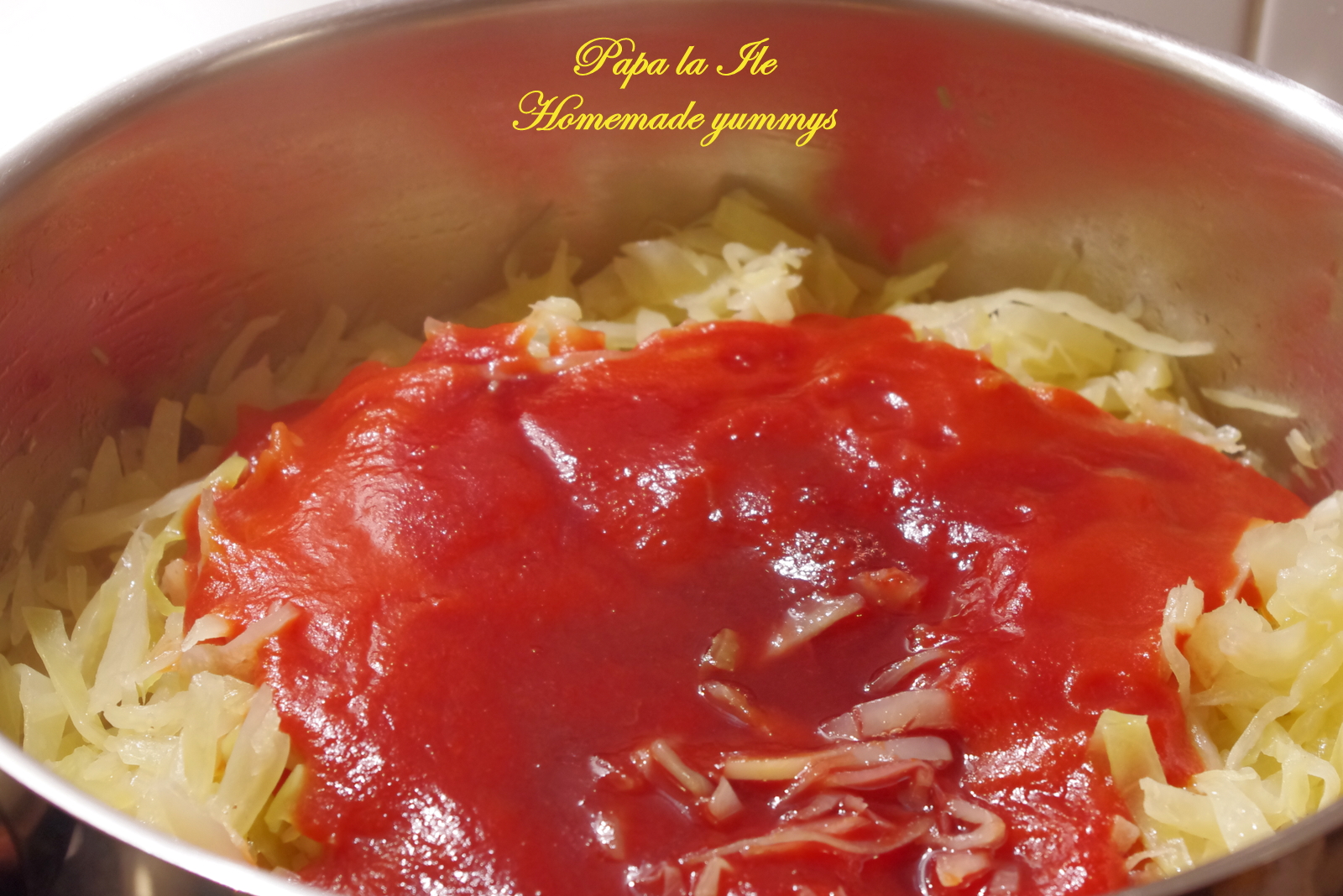 Am pus capacul și am lăsat să fiarbă. Am mai amestecat din când în când. După o oră am adăugat sucul de roșii si vinul. Am râșnit și niște piper și ardei iuți.