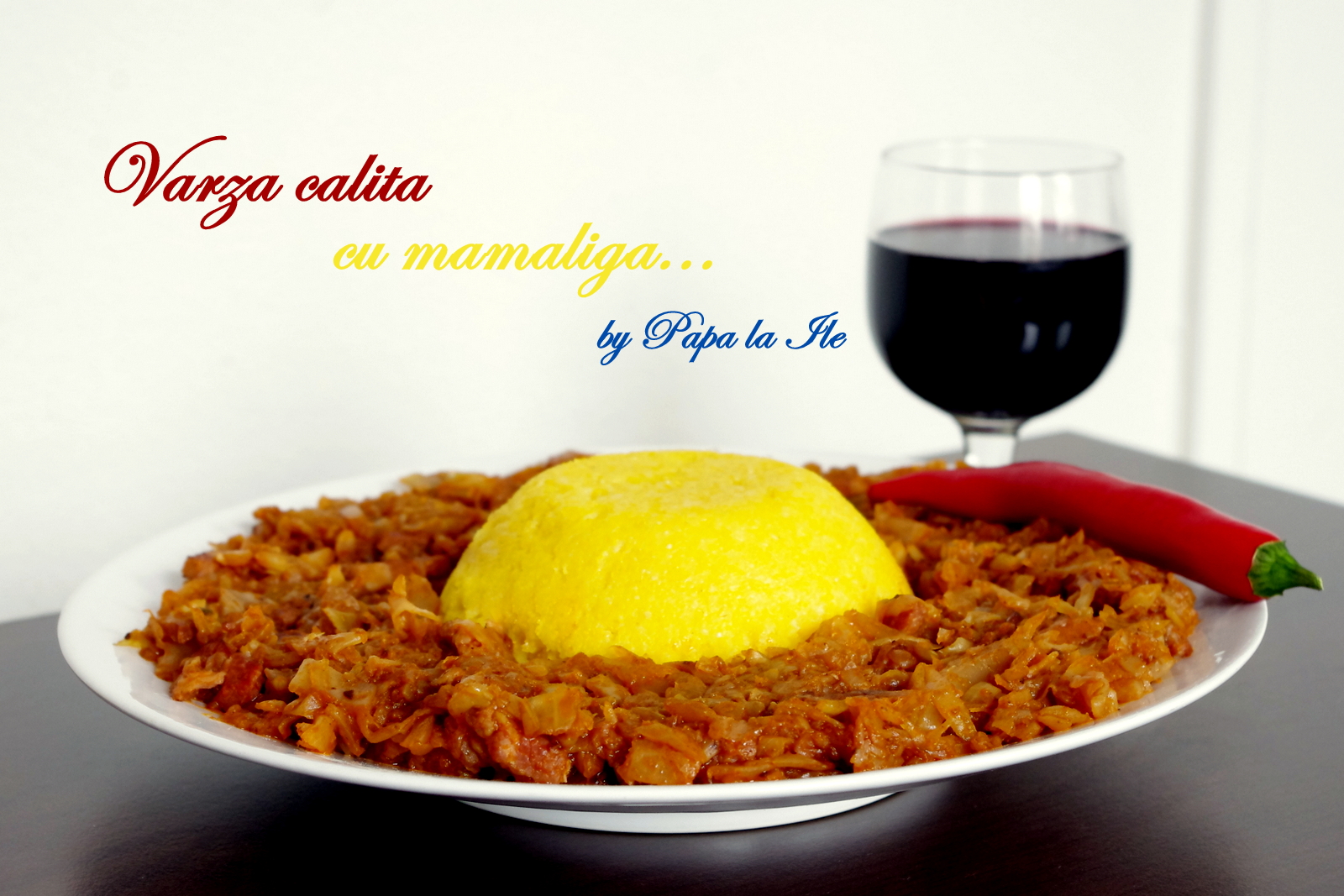 A fost incredibil de bună și cea mai mare fericire e că a avut fix gust de varză călită. Nu știu de ce, dar nu credeam că o să-mi iasă fix așa cum trebuie. Am mâncat-o, desigur, cu mămăligă! Am pus si-un pahar de vin roșu alături .
